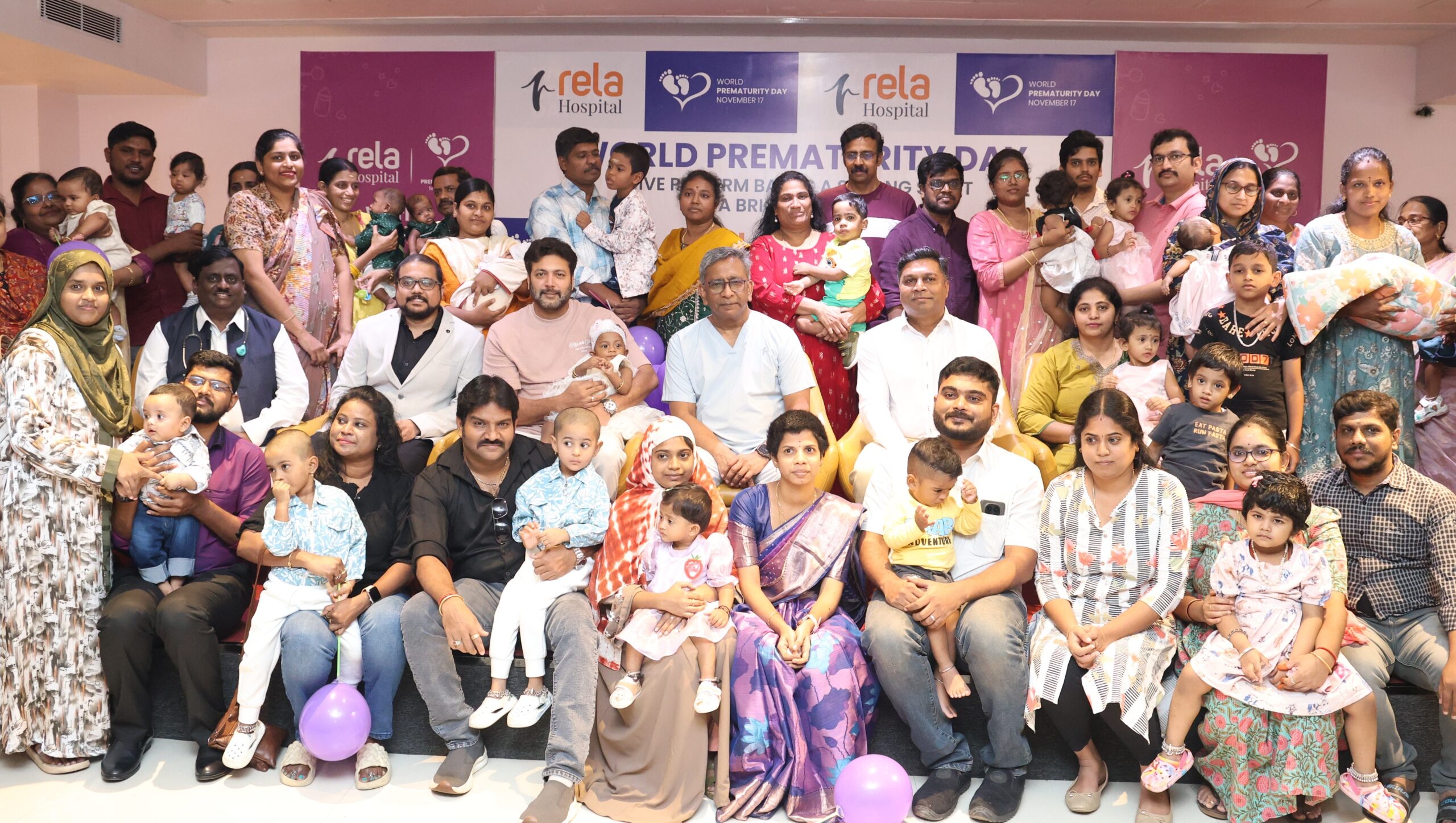 Actor Mr. Ravi Mohan took part in the event as the chief guest, which also featured experience-sharing sessions by parents of preterm babies. The function was presided over by Prof. Mohamed Rela, Chairman, Rela Hospital, and attended by Dr. Naresh Shanmugam, Director – Women and Child Health, Dr. Velmurugan Kannappan, Senior Consultant – Neonatologist and Paediatrician, Dr. M. P. Venkatesh, Clinical Lead – General Paediatrics along with the expert team from the hospital’s Neonatal Intensive Care Unit.